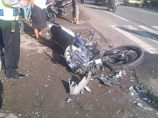 pengendara sepeda motor tewas seketika dilokasi kejadian. (29/10/2016)