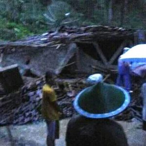 Akibat bencana longsor tersebut dua warga anggota keluarga Sdr. Soirin tertimbun material longsoran dan puing puing rumah.