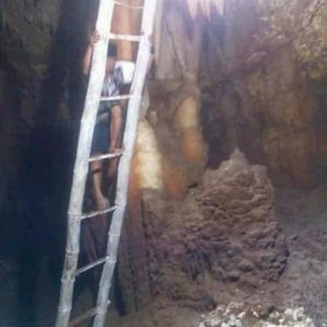 Kemudian setelah dilihat bersama anaknya ditemukan lubang dengan kedalamam 8 meter. Lalu TOTOK SUGIANTO turun kebawah dengan memakai tangga bambu setelah sampai bawah dan dilihatnya ada ruangan yang sangat lebar.